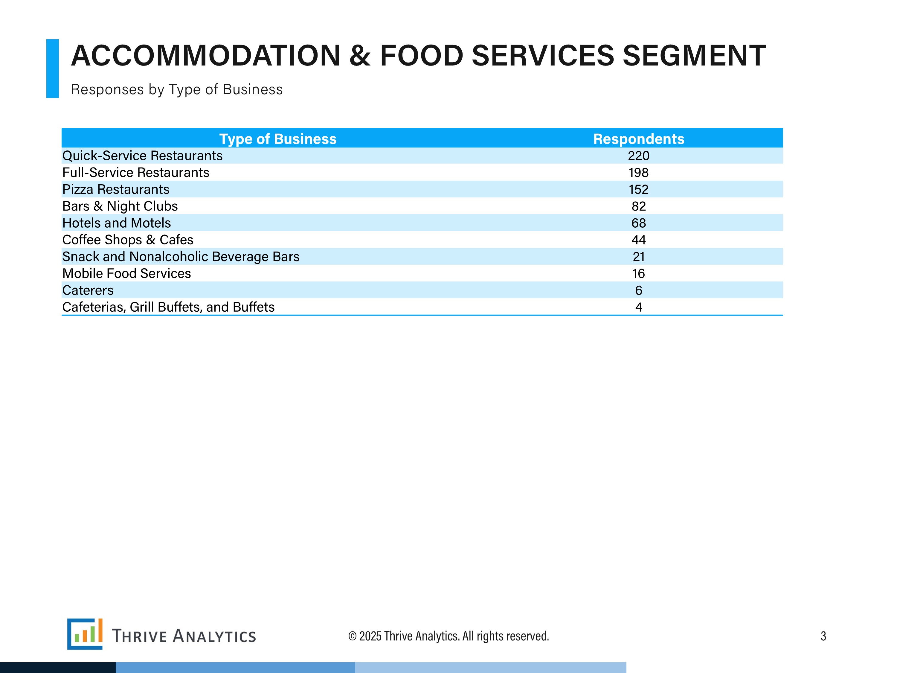 This report is over 60+ pages with 40+ charts. Each section is designed to provide a thorough understanding of the various aspects of operating within the accommodation and food services industry from a small business perspective. This comprehensive approach ensures that you, as a vendor or service provider, are well-equipped to meet the needs of your small business customers effectively.